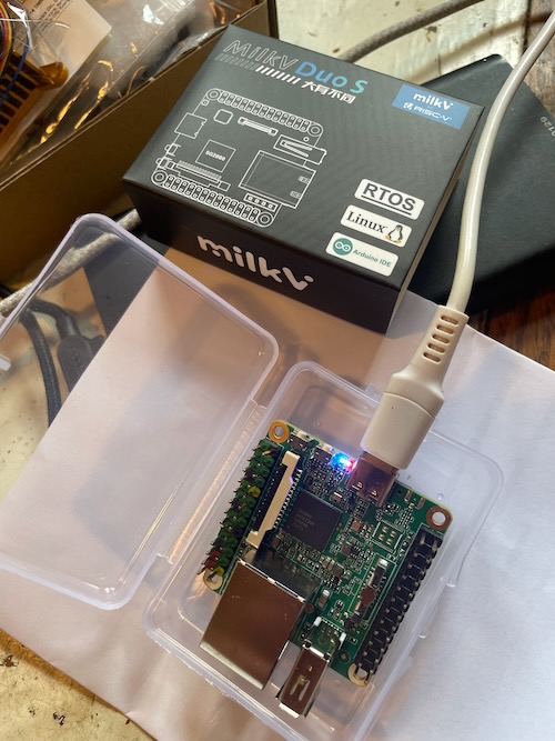 I stumbled upon another series of single board computers capable of running Linux online, the Milk V Duo S. These boards are interesting because they have both an ARM and a RISC V processor.