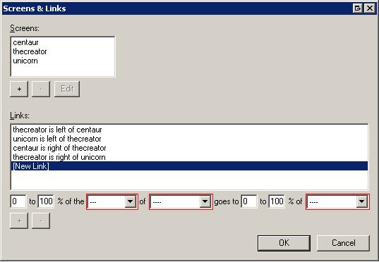 As you can see, the screen section has both the servers and clients host name. Next is to set up links. Physically, thecreator is in the middle (tri-monitor) with unicorn on the left and centaur on the right. Fill out the following information under the links section. Select the position of the link, the hostname and then finally the host's hostname.