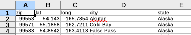 Here we're reading from our list of locations file, the "zip" column is of the data type float
